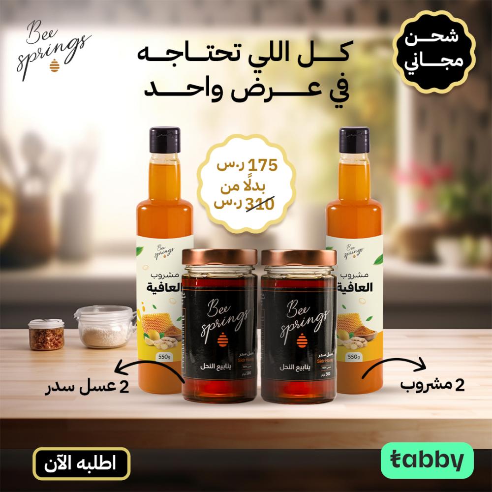 - المحتوى: عبوتان من مشروب الزنجبيل الطبيعي وعبوتان من عسل السدر النقي.