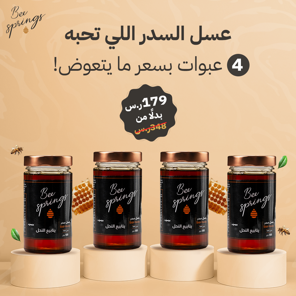 العرض كما سبق وأن ذكرنا يأتي مع أربعة حبات من عسل السدر الطبيعي الذي يعد افضل عسل نحل بالمملكة العربية السعودية حيث تمت عملية استخراجه والحصول عليه من رحيق أزهار شجرة السدر التي تعتبر من أهم الأشجار المعمرة التي تنمو في مناطق معينة فقط من العالم.